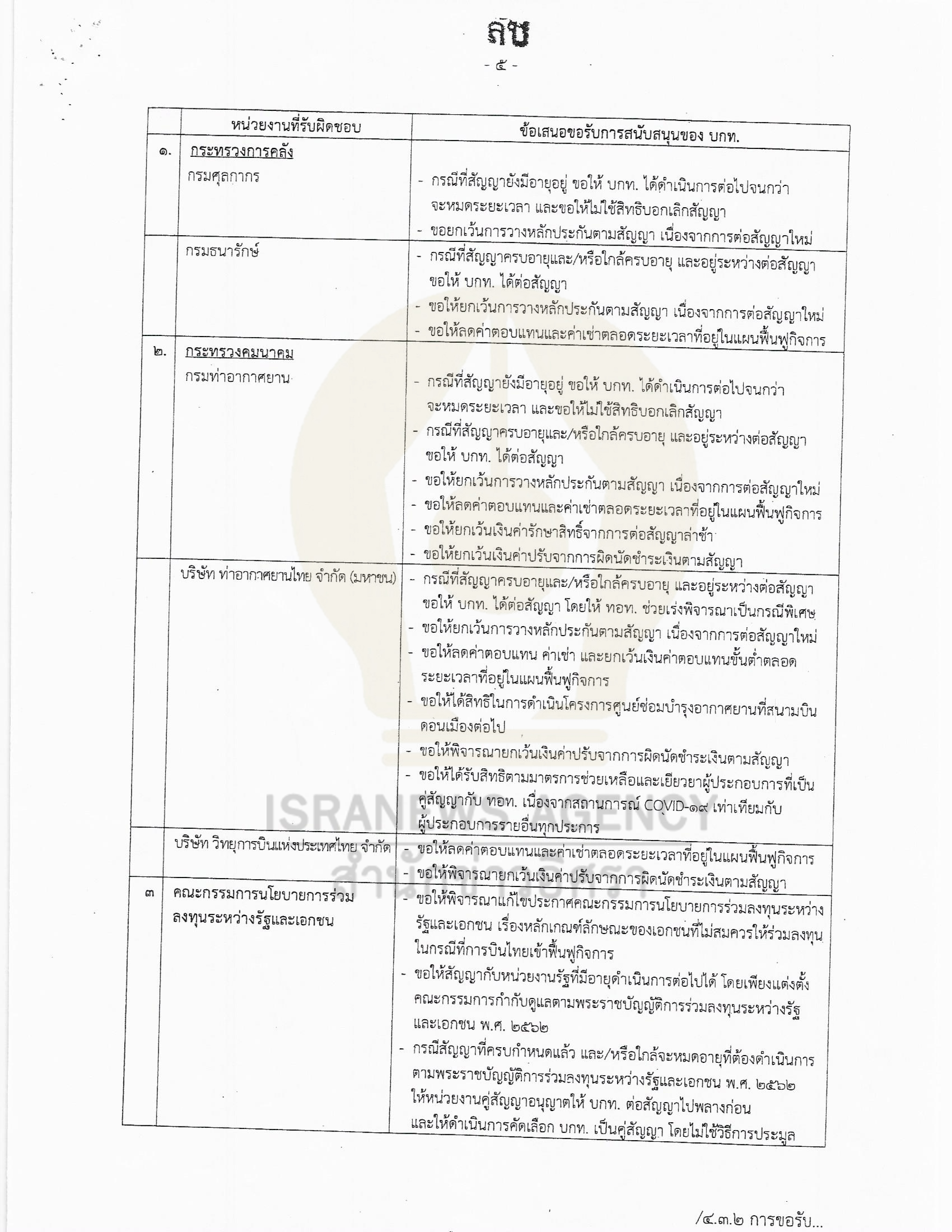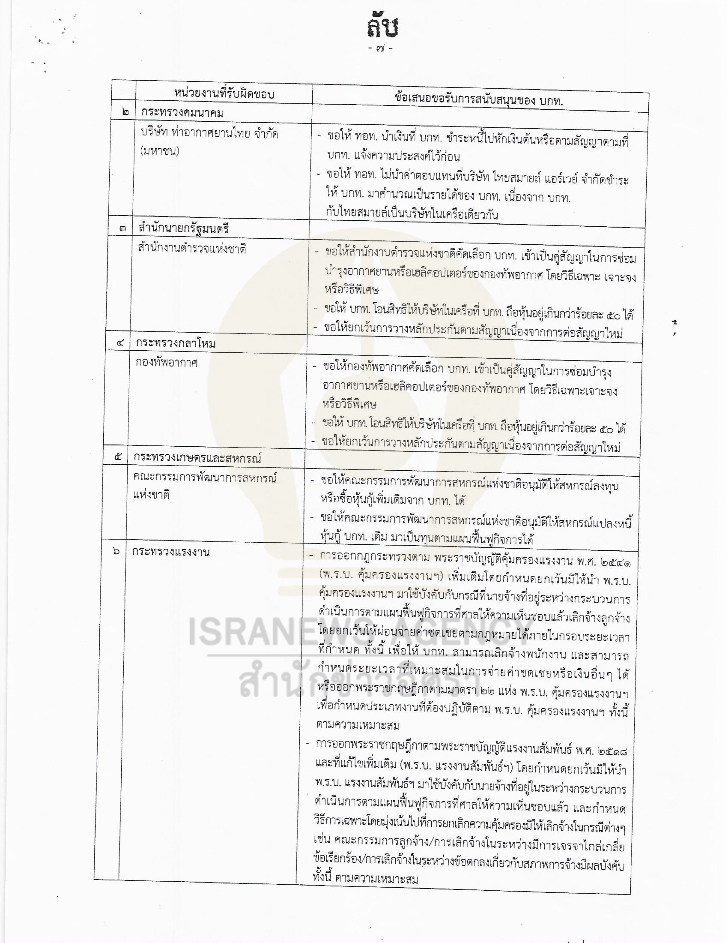 ขอให้คณะกรรมการนโยบายการร่วมลงทุนระหว่างรัฐและเอกชน (บอร์ด PPP) พิจารณาแก้ไขประกาศคณะกรรมการนโยบายการร่วมลงทุนระหว่างรัฐและเอกชน เรื่อง หลักเกณฑ์ลักษณะของเอกชนที่ไม่สมควรให้ร่วมลงทุนในกรณีที่การบินไทยเข้าฟื้นฟูกิจการ
