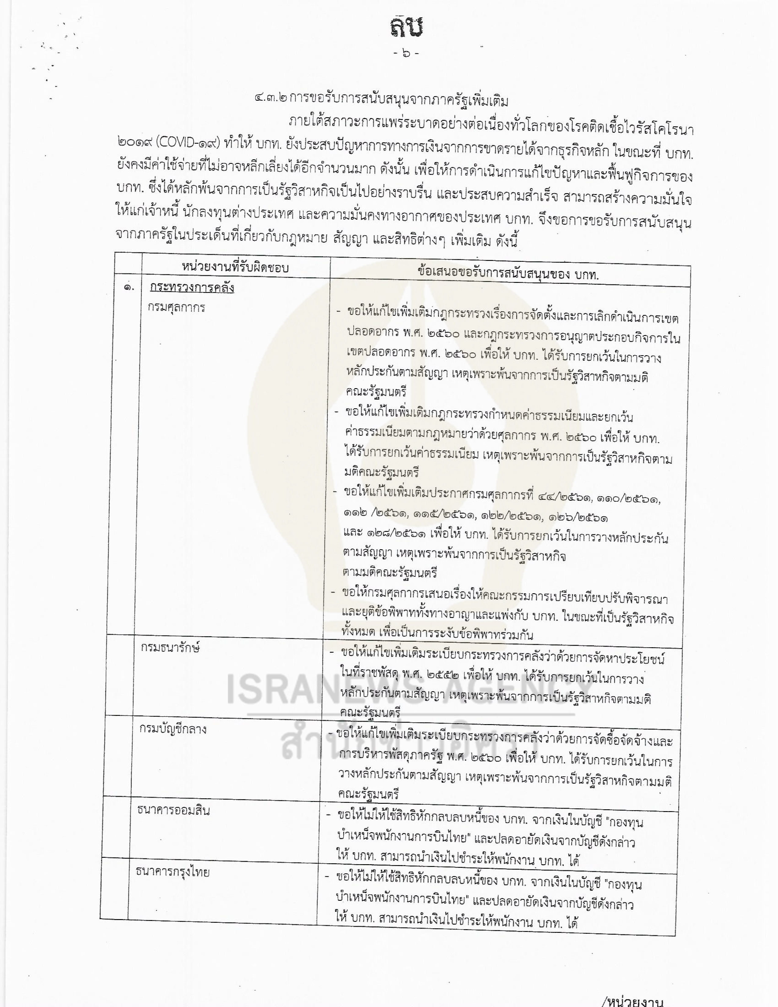 บริษัท การบินไทย จึงขอรับการสนับสนุนจากภาครัฐในประเด็นกฎหมาย สัญญา และสิทธิต่างๆ ‘เพิ่มเติม’