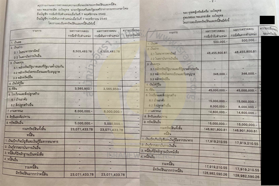 รวมทั้งคู่มีทรัพย์สินทั้งสิ้น 169,973,233 บาท หนี้สิน 17,919,210 บาท