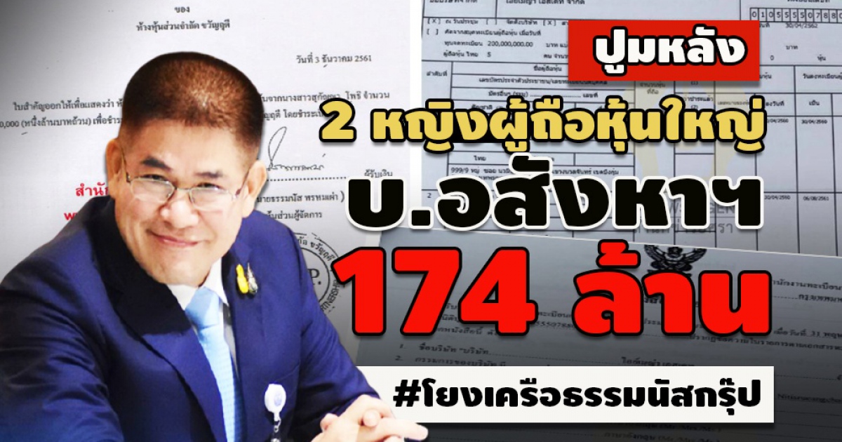 ทั้งหมดคือข้อมูลของบริษัท ไอย์เมญ่า เอสเตท ซึ่งมี น.ส.สุกัญญา โพธิ และ น.ส.พันธ์วิรา โพธิ ถือหุ้นใหญ่นับร้อยล้าน บุคคลดังกล่าวเกี่ยวโยงกับธรรมนัสกรุ๊ป