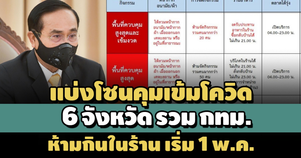 - ห้ามนั่งรับประทานอาหารในร้าน อนุญาตให้เฉพาะซื้อกลับบ้าน และเปิดได้ไม่เกิน 21.00 น.