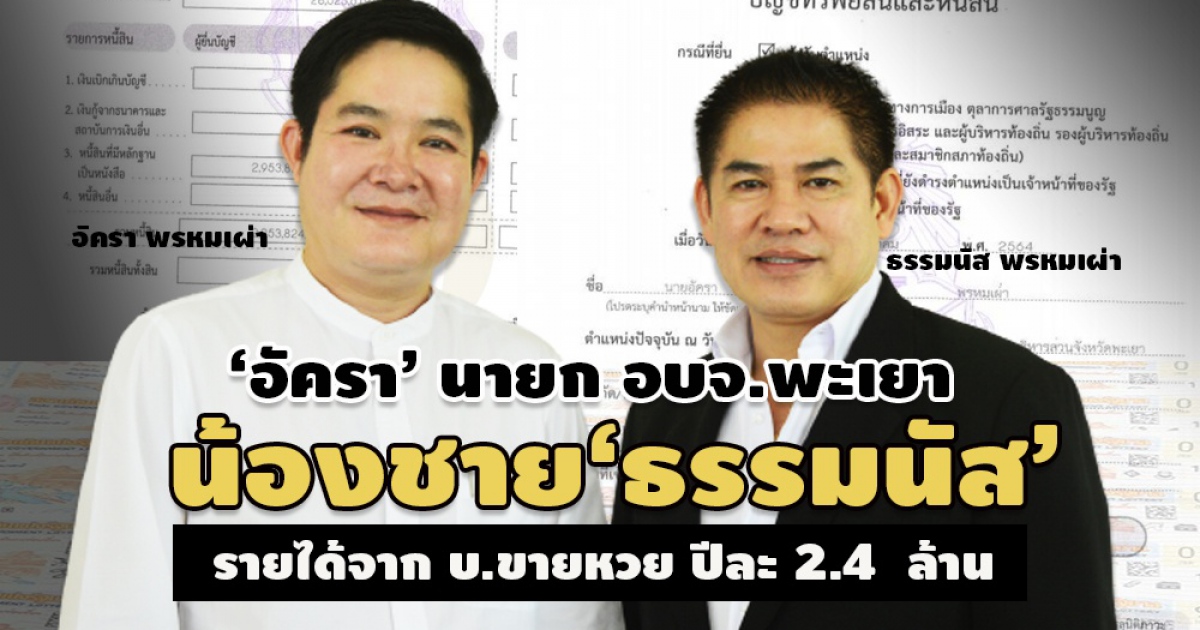 เมื่อวันที่ 9 เม.ย.2564 สำนักงานคณะกรรมการป้องกันและปราบปรามการทุจริตแห่งชาติได้เปิดเผยบัญชีแสดงรายการทรัพย์สินและหนี้สินของผู้ดำรงตำแหน่งนายกงค์การบริหารส่วนจังหวัด (อบจ.) ราย นายอัครา พรหมเผ่า นายก อบจ. พะเยา อายุ 48 ปี
