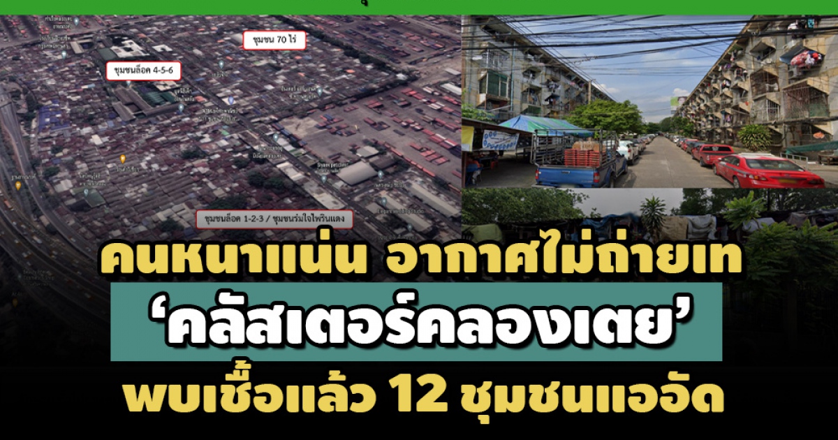 "...ประเด็นที่น่าสนใจเวลานี้ คือ ลักษณะทั่วไปของชุมชนในเขตคลองเตยที่พบผู้ติดเชื้อ เป็นชุมชนแออัด มีประชากรอาศัยอยู่กันอย่างหนาแน่น ที่พักอาศัยมีทั้งที่เป็นอาคารที่พักหลายชั้น และเป็นบ้านที่ติดๆกัน มีการใช้พื้นที่บางส่วนร่วมกัน การระบายอากาศไม่ดี โดยกลุ่มผู้อาศัยในแหล่งชุมชนแออัด พบผู้ติดเชื้อแล้ว 193 ราย มีรายงานเบื้องต้นกระจายตัวอยู่ใน 12 ชุมชนในเขตคลองเตย .."