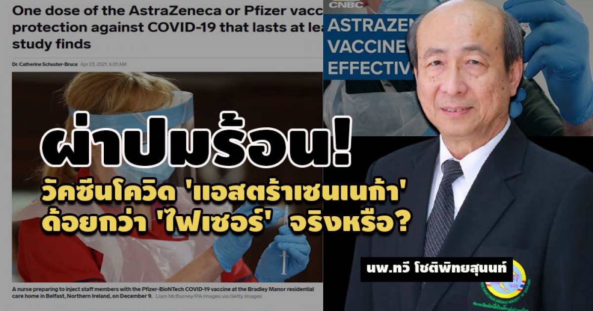 จากกรณีดังกล่าว สำนักข่าวอิศรา ได้ติดต่อไปยัง นพ.ทวี โชติพิทยสุนนท์ ที่ปรึกษากรมการแพทย์และกรมควบคุมโรค เพื่อสอบถามทั้งในประเด็นการวิธีการฉีดวัคซีนและประสิทธิภาพของวัคซีนเพื่อให้ได้ความชัดเจนในเรื่องเหล่านี้ รวมไปถึงประเด็นสำคัญที่ว่า แท้จริงแล้ว วัคซีนโควิด 'แอสตร้าเซนเนก้า' ด้อยกว่า 'ไฟเซอร์' จริงหรือ?