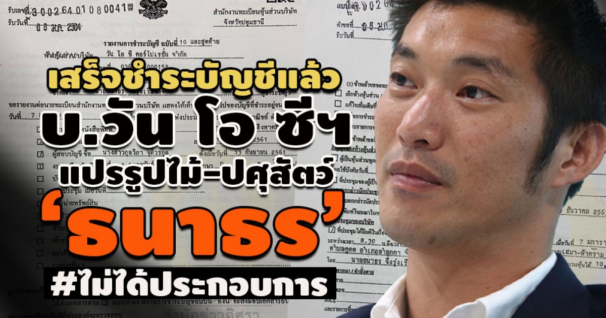 ตามไปดู บ.วัน โอ ซี คอร์โปเรชัน ธุรกิจโรงเลื่อย แปรรูปไม้ ปศุสัตว์ ‘ธนาธร’ ล่าสุดจดทะเบียนเสร็จชำระบัญชีแล้ว ต้นปี 2564 นำส่งงบฯ เงินสด 954,055.45 ขาดทุนสะสม 45,944.45 บาท ก่อนหน้าเจ้าตัวแจงไม่ได้ประกอบการ