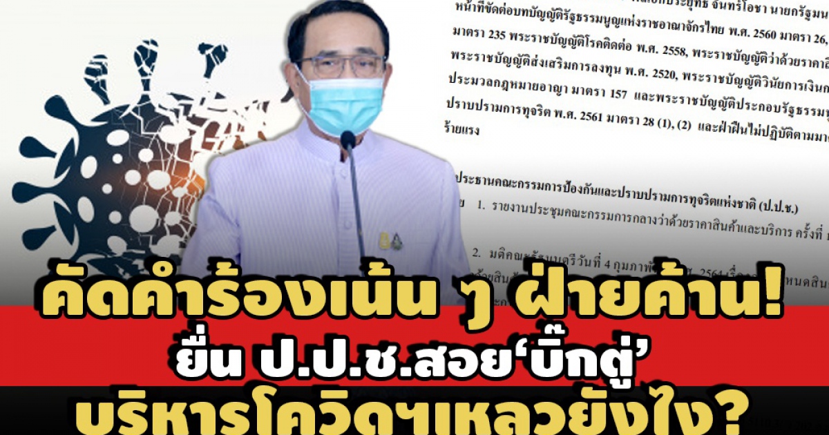 คือหลักใหญ่ใจความสำคัญที่พรรคร่วมฝ่ายค้าน ไปยื่นหนังสือร้องเรียนต่อสำนักงานคณะกรรมการป้องกันและปราบปรามการทุจริตแห่งชาติ (ป.ป.ช.) ดำเนินการไต่สวนและมีความเห็นต่อ พล.อ.ประยุทธ์ จันทร์โอชา นายกรัฐมนตรี และ รมว.กลาโหม กรณีการบริหารจัดการสถานการณ์โควิด-19 ล้มเหลว