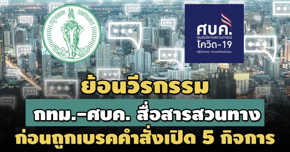 เกิดกระแสวิพากษ์วิจารณ์อีกครั้ง สำหรับเรื่องความชัดเจนในการสื่อสารของหน่วยงานรัฐ ระหว่าง 'กทม.' และ 'ศูนย์บริหารสถานการณ์แพร่ระบาดของโรคติดเชื้อไวรัสโคโรนา-2019 (ศบค.)'