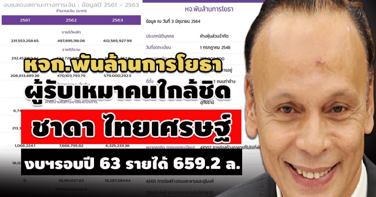 ตามส่องข้อมูล หจก.พันล้านการโยธา ผู้รับเหมา จ.อุทัยฯ คนใกล้ชิด - ลูกชาย‘ชาดา ไทยเศรษฐ์’เคยร่วมหุ้น ส่งงบการเงินรอบปีสิ้นสุด 30 มิ.ย.2563 รายได้ 659.2 ล้าน ช่วงรอบปี 2562 พุ่งกว่าปี 2561 กว่า 300 ล้าน ช่วง 2549-2561 คู่สัญญาหน่วยงานรัฐ 1,766.8 ล้าน