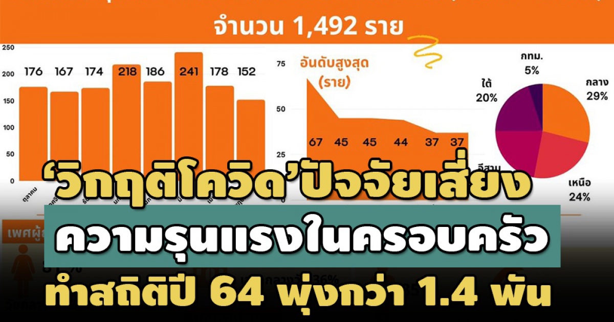 “… ยอดรายงานผู้ถูกกระทำความรุนแรงในครอบครัวพบว่า ในช่วงเดือน ม.ค.-เม.ย.2564 มีผู้ถูกกระทำความรุนแรงในครอบครัว 1,492 ราย ซึ่งสูงกว่าในช่วงเดือน ต.ค.-ก.พ.2563 ที่มีผู้ถูกกระทำความรุนแรงในครอบครัว 919 ราย สะท้อนให้เห็นว่าสถานการณ์การระบาดของโควิดเป็นปัจจัยหนึ่งที่ทำให้เกิดความรุนแรงในครอบครัวมากขึ้น”