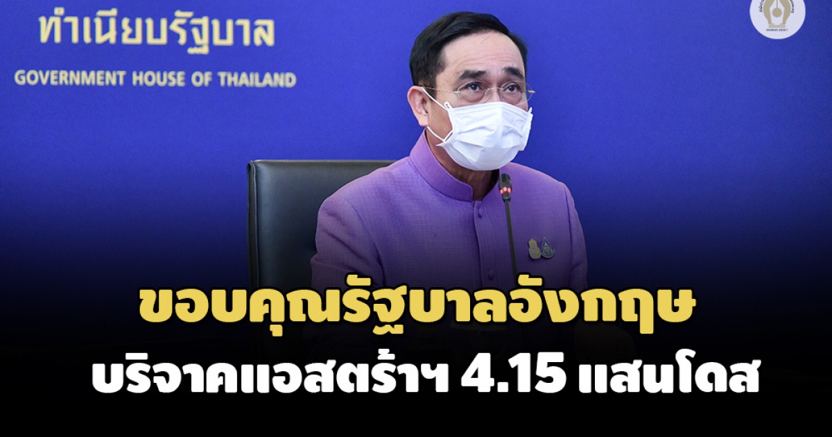 นายกรัฐมนตรีขอบคุณรัฐบาลอังกฤษ ส่งมอบวัคซีน 'แอสตร้าเซนเนก้า' ให้ไทยอีก 415,040 โดส คาดได้รับช่วงต้นเดือน ส.ค.นี้