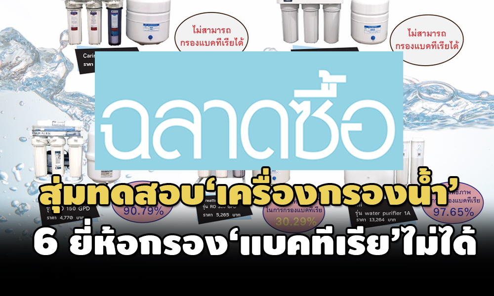 นิตยสาร ‘ฉลาดซื้อ’ เผยผลทดสอบเครื่องกรองน้ำ 26 ตัวอย่าง พบ 8 รุ่น 6 ยี่ห้อ กรอง ‘แบคทีเรีย’ ไม่ได้ตามที่โฆษณา ขณะที่อีก 6 รุ่น กรอง ‘แบคทีเรีย’ ได้น้อยกว่า 50% ด้าน ‘สภาองค์กรของผู้บริโภค’ จี้ ‘สมอ.’ ออกมาตรฐานบังคับ