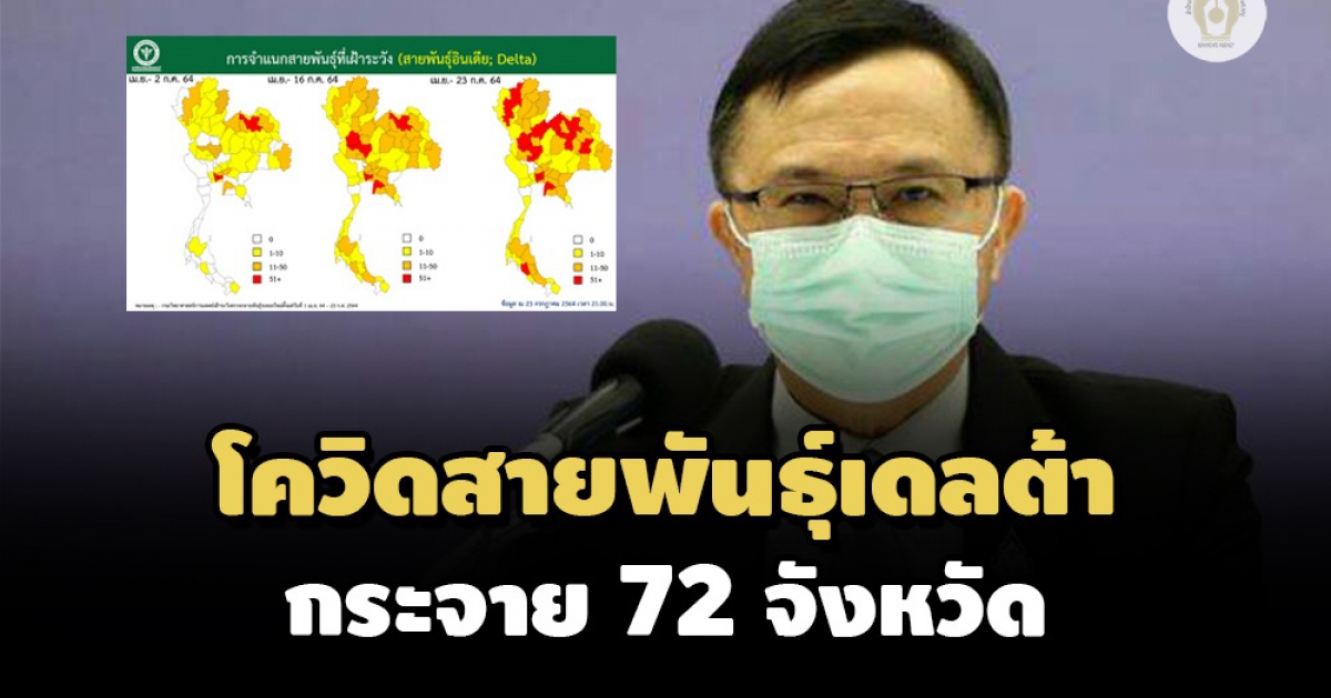 กรมวิทย์ฯเผยเจอเชื้อโควิดสายพันธุ์เดลต้า กระจาย 72 จังหวัด เจอสายพันธุ์เบต้า ในจังหวัดบึงกาฬรวมแล้ว 5 ราย ขณะที่ติดเชื้อร่วม 2 สายพันธุ์ ยังไม่พบรายใหม่