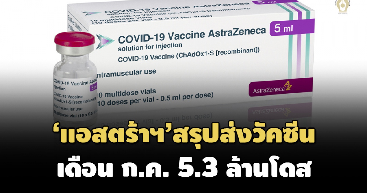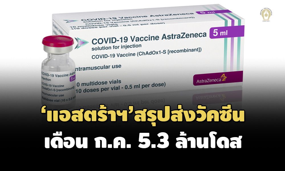 แอสตร้าเซนเนก้า สรุปตัวเลขส่งมอบวัคซีนให้ไทยเฉพาะเดือน ก.ค. จำนวน 5.3 ล้านโดส สรุปยอดรวม 11.3 ล้านโดส