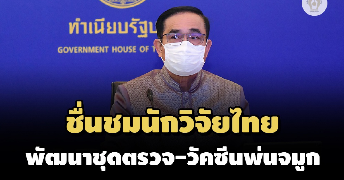 นายกฯชื่นชมนักวิจัยไทย พัฒนาชุดตรวจโควิด และวัคซีนป้องกันโควิดแบบพ่นจมูกสำเร็จ เผยแม้ยังจะต้องใช้เวลาในการทดสอบผลให้แน่ชัดอีกระยะหนึ่ง แต่ถือเป็นตัวบ่งชี้ศักยภาพที่ช่วยลดการนำเข้าเวชภัณฑ์ เสริมความมั่นคงทางสาธารณสุข