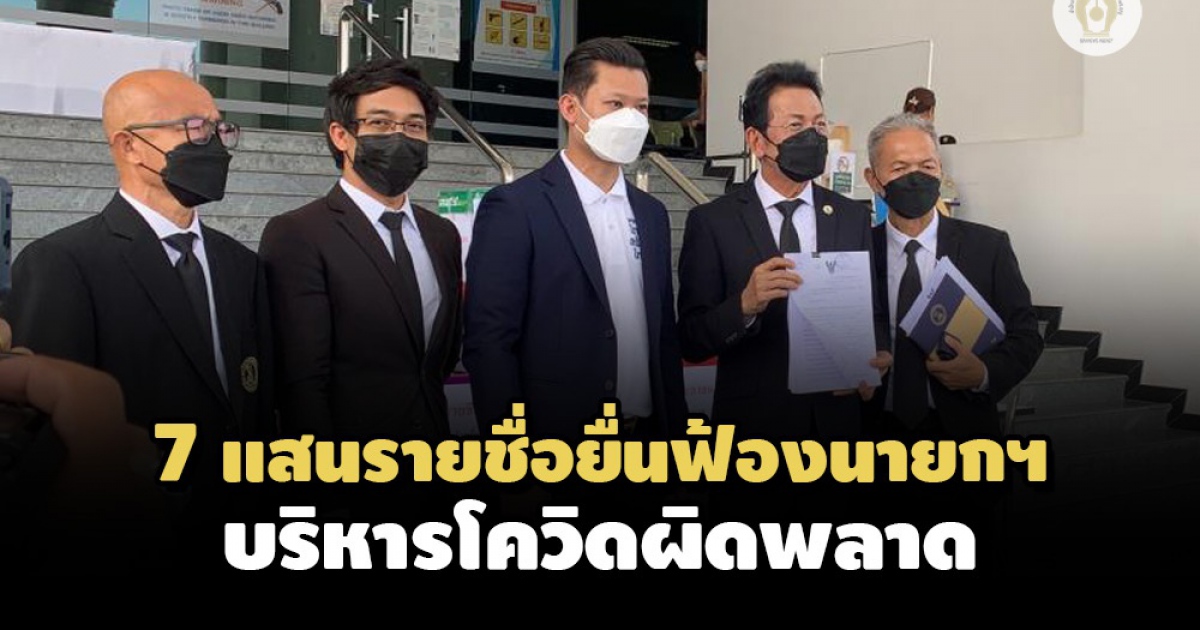 สมาคมทนายความฯ พร้อมด้วยพรรคไทยสร้างไทย และตัวแทนโจทก์ นำ 7 แสนรายชื่อประชาชน ยื่นฟ้องนายกฯ ปมปฏิบัติหน้าที่มิชอบ-บริหารสถานการณ์โควิดผิดพลาด ศาลนัดฟังคำสั่งชั้นตรวจฟ้อง 30 ส.ค.นี้