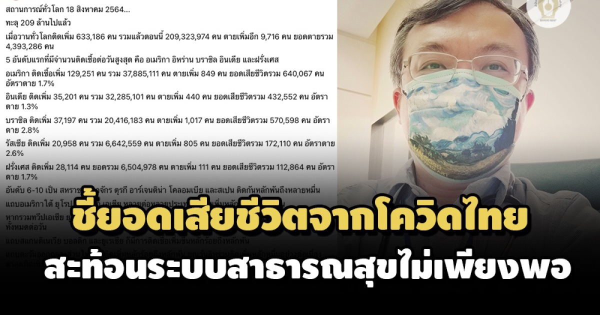 จำนวนการเสียชีวิตของไทยนั้นมีสูงระดับสองร้อยคนในแต่ละวันที่เห็นจากรายงานทางการ ประกอบกับการเสียชีวิตนั้นไม่ใช่แค่ที่สถานพยาบาล แต่ยังเกิดที่บ้าน ฯลฯ ซึ่งบ่งบอกถึงความไม่เพียงพอของระบบที่จะรองรับดูแลผู้ติดเชื้อได้ นี่จึงเป็นโจทย์หลักที่ยังต้องมีการเร่งดำเนินการ