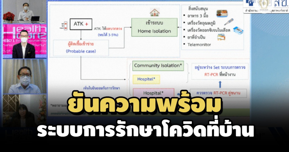 นพ.สมศักดิ์ กล่าวด้วยว่า โดยหลักการเมื่อตรวจ ATK แล้วผลเป็นบวก กระบวนการต่อไปคือการเข้าสู่ระบบการดูแลแบบ Home Isolation, Community Isolation โดยทางสำนักงานหลักประกันสุขภาพแห่งชาติ (สปสช.) จะสนับสนุนอาหาร 3 มื้อ เครื่องวัดอุณหภูมิ เครื่องวัดออกซิเจนในเลือด ยา และมีแพทย์ติดตามอาการผ่านระบบการดูแลผู้ป่วยทางไกล ซึ่งปัจจุบันมีคนไข้ที่เข้าระบบการดูแลแบบ Home Isolation, Community Isolation แล้วประมาณ 7-8 หมื่นคน และพบว่าจำนวนผู้ติดเชื้อรอเตียงที่เคยสูงถึงหลักหมื่น ปัจจุบันลดจำนวนลงเรื่อยๆ หรือตัวเลขระยะเวลาการรอเตียงของผู้ป่วยสีเหลือง-แดง ที่มากกว่า 1 วัน ก็ลดลงกว่า 50% ข้อมูลเหล่านี้คือสิ่งที่สะท้อนว่ากระบวนการ Home Isolation สามารถเข้ามาแบ่งเบาภาระเตียงในโรงพยาบาลได้อย่างดี