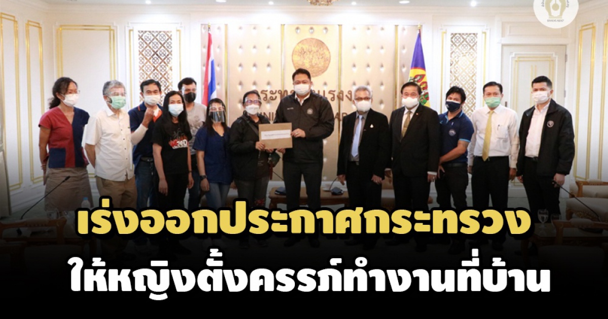 รมว.แรงงาน สั่ง กสร.เร่งออกประกาศกระทรวงขอนายจ้างให้หญิงตั้งครรภ์ทำงานที่บ้าน โดยให้จ่ายค่าแรงเต็มจำนวน ลดเสี่ยงโควิด หลังได้รับข้อเรียกร้องจากสมาชิกเครือข่ายแรงงานเพื่อสิทธิประชาชน