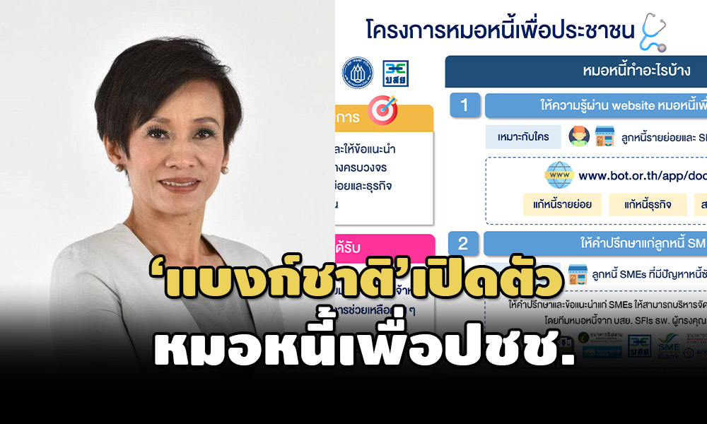 ขณะที่ นายกอบศักดิ์ ดวงดี เลขาธิการสมาคมธนาคารไทย กล่าวว่า สมาคมธนาคารไทยได้ส่งบุคลากรผู้เชี่ยวชาญร่วมให้คำปรึกษาการแก้ไขปัญหาหนี้สินอย่างครบวงจรในโครงการหมอหนี้เพื่อประชาชน ตั้งแต่การประเมินและสำรวจภาระหนี้ การเตรียมตัวเจรจาแก้ไขหนี้ การวางแผนชำระคืนหนี้ รวมถึงแนวทางการปรับตัวในอนาคตเพื่อช่วยเสริมสภาพคล่องทางการเงินให้กับผู้ประกอบการ SMEs และรายย่อย โดยจะเริ่มจากลูกค้าของแต่ละธนาคารก่อน
