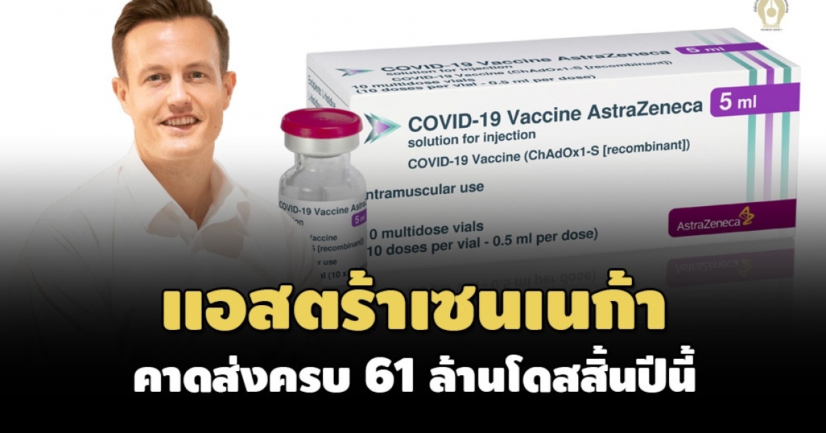 แอสตร้าเซนเนก้าเผยส่งมอบวัคซีนให้ไทยได้ตามแผน สรุปยอดส่งวัคซีนเดือน ส.ค. 5.3 ล้านโดส คาดครบ 61 ล้านโดสในสิ้นปีนี้