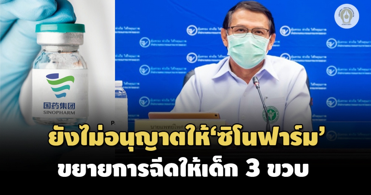 อย.ยังไม่อนุญาตให้ 'ซิโนฟาร์ม' ขยายการฉีดวัคซีนให้เด็กตั้งแต่ 3 ปีขึ้นไป ข้อมูลความปลอดภัย-ประสิทธิผลของวัคซีนในกลุ่ม 3-17 ปียังไม่เพียงพอ