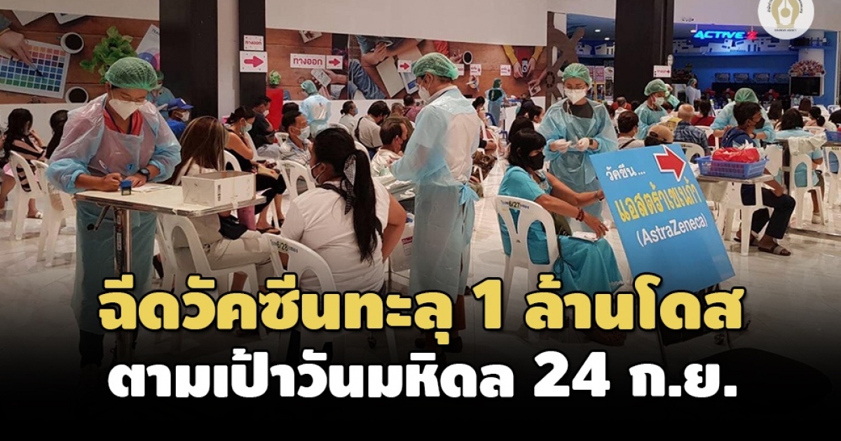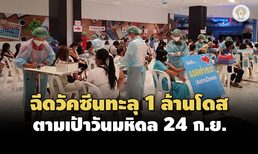 ปลัดกระทรวงสาธารณสุข เผยฉีดวัคซีนโควิด ให้ประชาชน ณ เวลา 16.30 น. รวม 12 เขตสุขภาพฉีดได้ 1,062,081 ล้านโดส ครบตามเป้าหมาย เพื่อถวายเป็นพระราชกุศลสมเด็จพระมหิตลาธิเบศร อดุลยเดชวิกรม พระบรมราชชนก เนื่องในวันมหิดล 24 ก.ย. 64