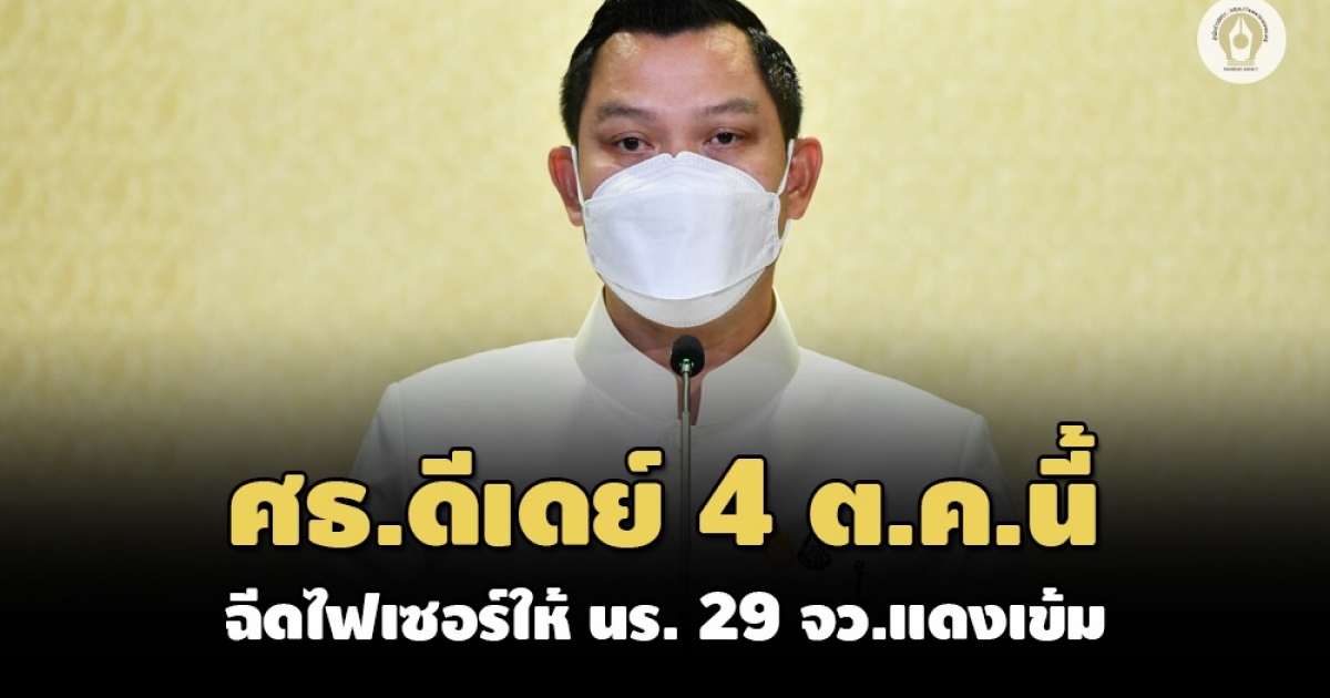 ศธ. ดีเดย์ 4 ต.ค.นี้! ฉีดวัคซีนไฟเซอร์ให้นักเรียน-เยาวชน 29 จังหวัดสีแดงเข้ม นายกรัฐมนตรีจะเข้าร่วมพิธี Kick off สร้างเกราะป้องกันด้วยวัคซีน เด็กปลอดภัย เรียนอุ่นใจ ต้อนรับเปิดเทอม ณ โรงเรียนพิบูลอุปถัมภ์ เบื้องต้นมีเด็กยื่นขอรับวัคซีนแล้ว 71.67%