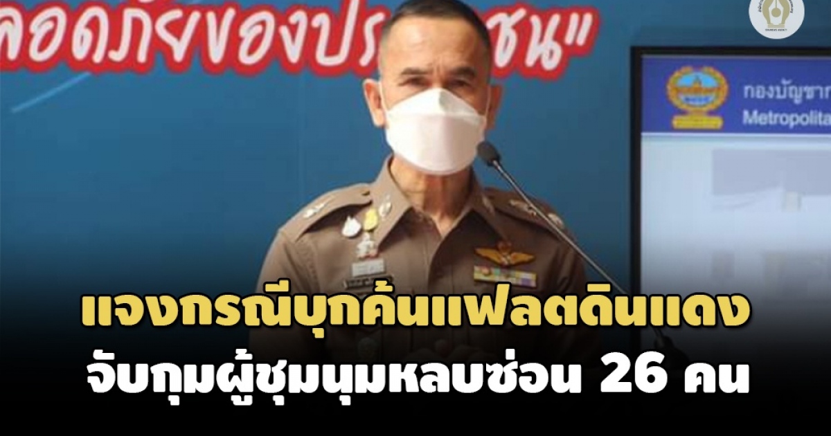 รองผู้บัญชาการตำรวจนครบาลแจงกรณีเข้าตรวจค้นแฟลตดินแดงช่วงกลางดึกที่ผ่านมา เหตุกลุ่มผู้ชุมนุมหลบซ่อนบริเวณดังกล่าว จึงเข้าจับกุมทั้งหมด 26 คน ส่วนกรณีประชาชน 3 รายบาดเจ็บ ยืนยันไม่ได้ถูกเจ้าหน้าที่ทำร้าย