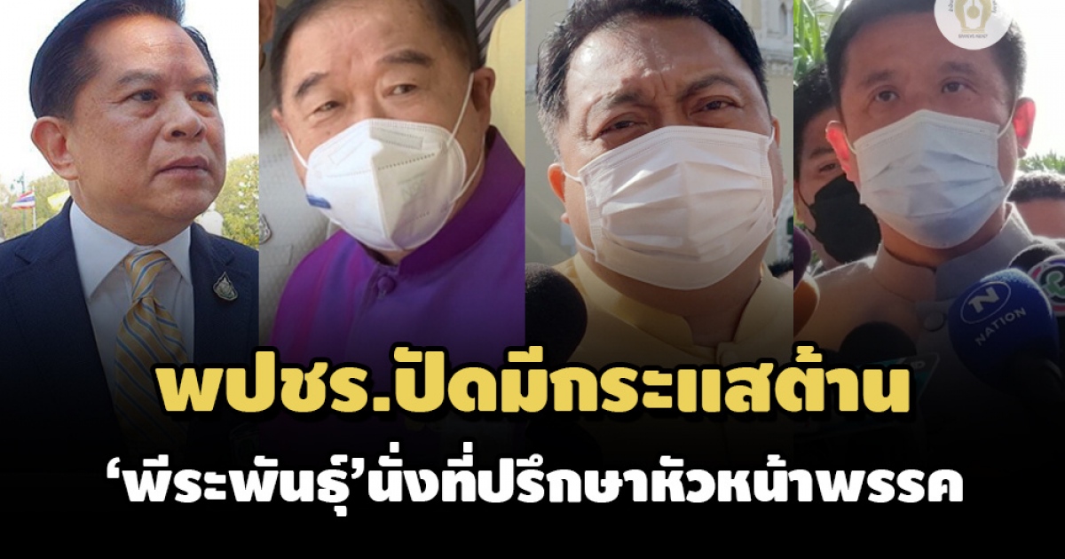 แกนนำ พปชร.ปัด ส.ส.มีกระแสต้าน 'พีระพันธุ์ สาลีรัฐวิภาค' นั่งที่ปรึกษาหัวหน้าพรรค 'ชัยวุฒิ' เผยเป็นคนของนายกฯ ถูกส่งมาประสาน 'บิ๊กป้อม'