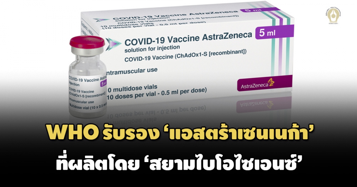 องค์การอนามัยโลก รับรอง ‘แอสตร้าเซนเนก้า’ ที่ผลิตโดย ‘สยามไบโอไซเอนซ์’ เป็นวัคซีนใช้ในภาวะฉุกเฉิน