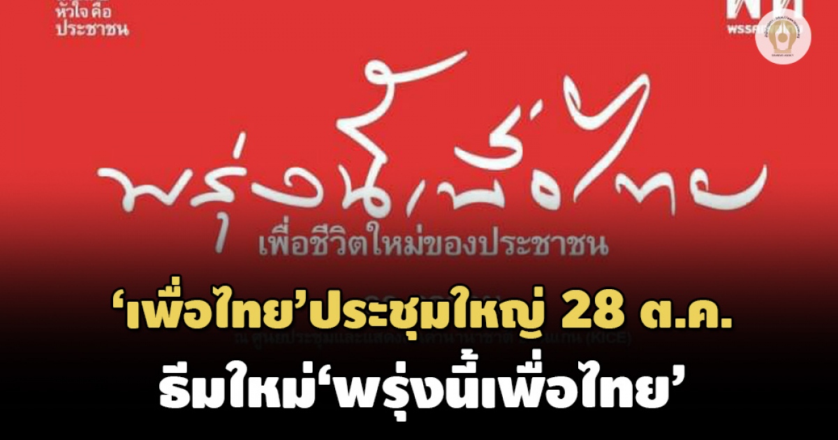 พรรคเพื่อไทย จัดประชุมใหญ่ 28 ต.ค. เปิดตัวธีม ‘พรุ่งนี้เพื่อไทย’ ทวงคืนศักดิ์ศรีความเป็นมนุษย์-คุณภาพชีวิตกลับคืนสู่คนไทย
