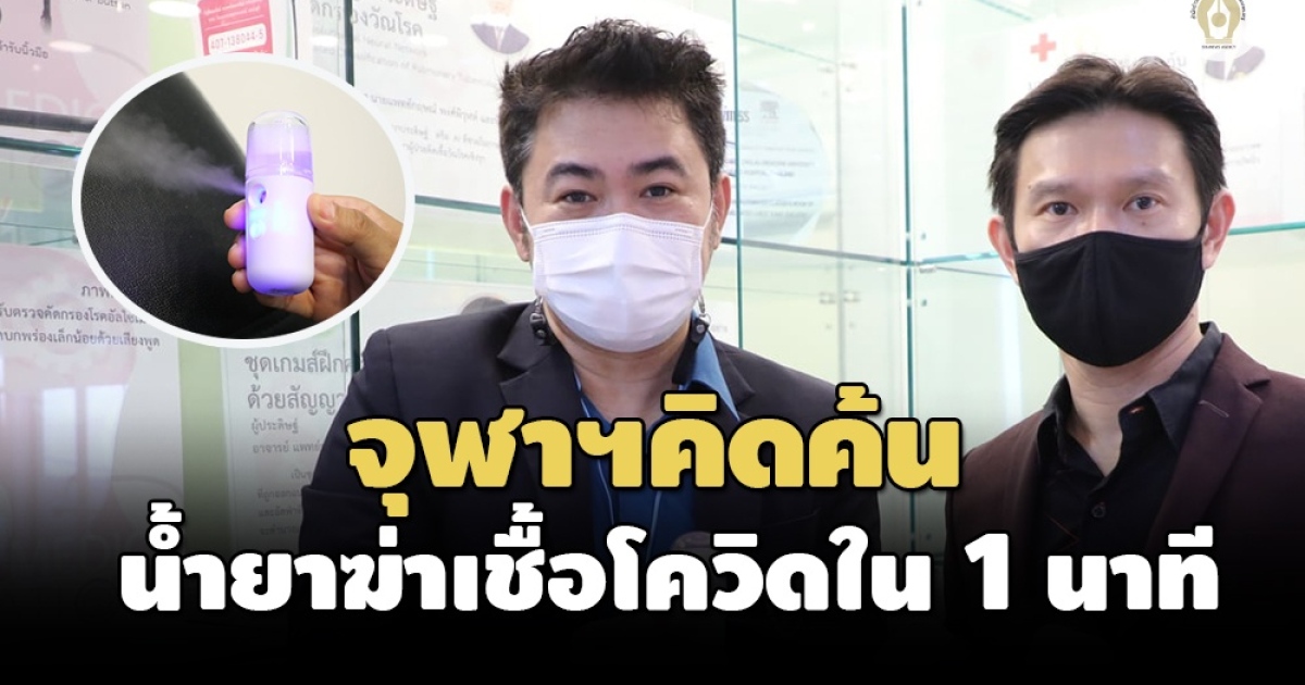 คณะแพทยศาสตร์ จุฬาลงกรณ์มหาวิทยาลัย คิดค้นนวัตกรรมน้ำยาฆ่าเชื้อโควิดสูตรไร้แอลกอฮอล์ สามารถฆ่าเชื้อโรคตายภายใน 1 นาที และได้รับการจดแจ้งสิทธิบัตรระดับชาติแล้ว