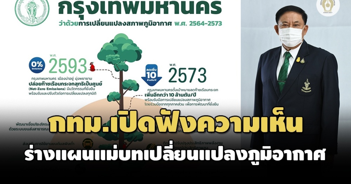 กทม.เปิดรับฟังความเห็นต่อ 'ร่างแผนแม่บทการเปลี่ยนแปลงสภาพภูมิอากาศ พ.ศ.2564 – 2573 ' ผ่านลิงก์ออนไลน์ ตั้งแต่วันนี้ – 26 ธ.ค.64