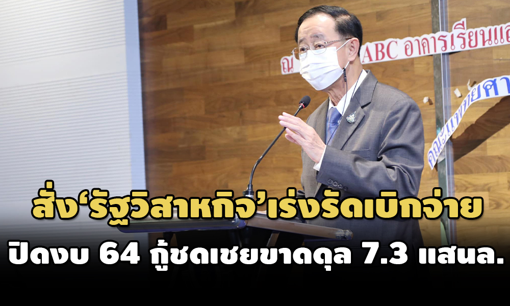 ‘รมว.คลัง’ กำชับ ‘สคร.’ เร่งรัดรัฐวิสาหกิจเบิกจ่ายโค้งสุดท้ายปีนี้ กำหนดมาตรการกระตุ้นเบิกจ่ายปีงบ 65 ไม่น้อยกว่า 95% หวังช่วยผลักดันเศรษฐกิจฟื้น ขณะที่ ‘ครม.’ รับทราบรายงาน ‘รับ-จ่าย’ งบปี 64 กู้ชดเชยขาดดุลฯ 7.34 แสนล.