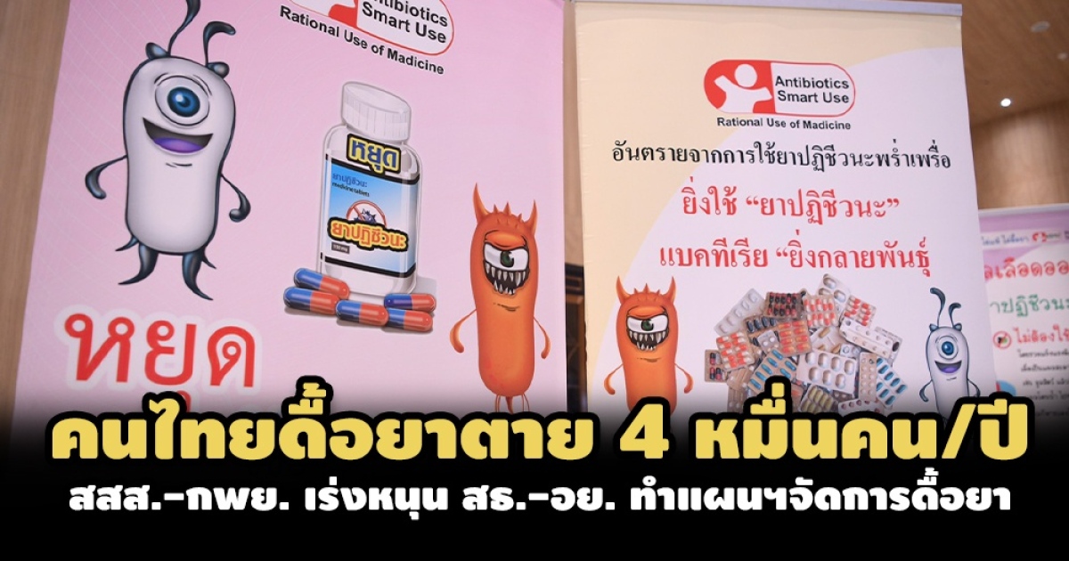 อึ้ง!!! คนไทยดื้อยาตาย 4 หมื่นคน/ปี เหตุใช้ยาปฏิชีวนะเกินจำเป็น แถมโควิด-19 ซ้ำ คนเข้าใจผิดยาฆ่าเชื้อไวรัสได้ สสส.-กพย. เร่งหนุน สธ.-อย. จัดทำแผนยุทธศาสตร์จัดการดื้อยา ระยะ 2 ขยายความร่วมมือเครือข่ายวิชาการ-ภาคประชาสังคม ส่งต่อความรู้-กระตุ้นสังคมใช้ยาเหมาะสม หยุดภัยเชื้อดื้อยา