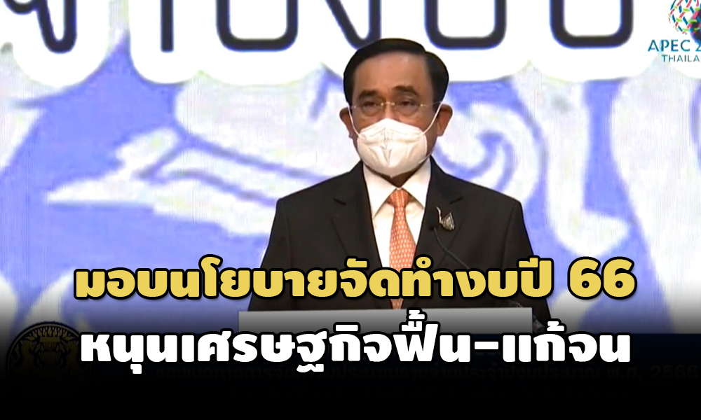 นายกฯมอบนโยบายจัดทำงบปี 66 เน้นสนับสนุนการฟื้นตัวของเศรษฐกิจอย่างต่อเนื่อง แก้ปัญหาความยากจนแบบ ‘พุ่งเป้า’