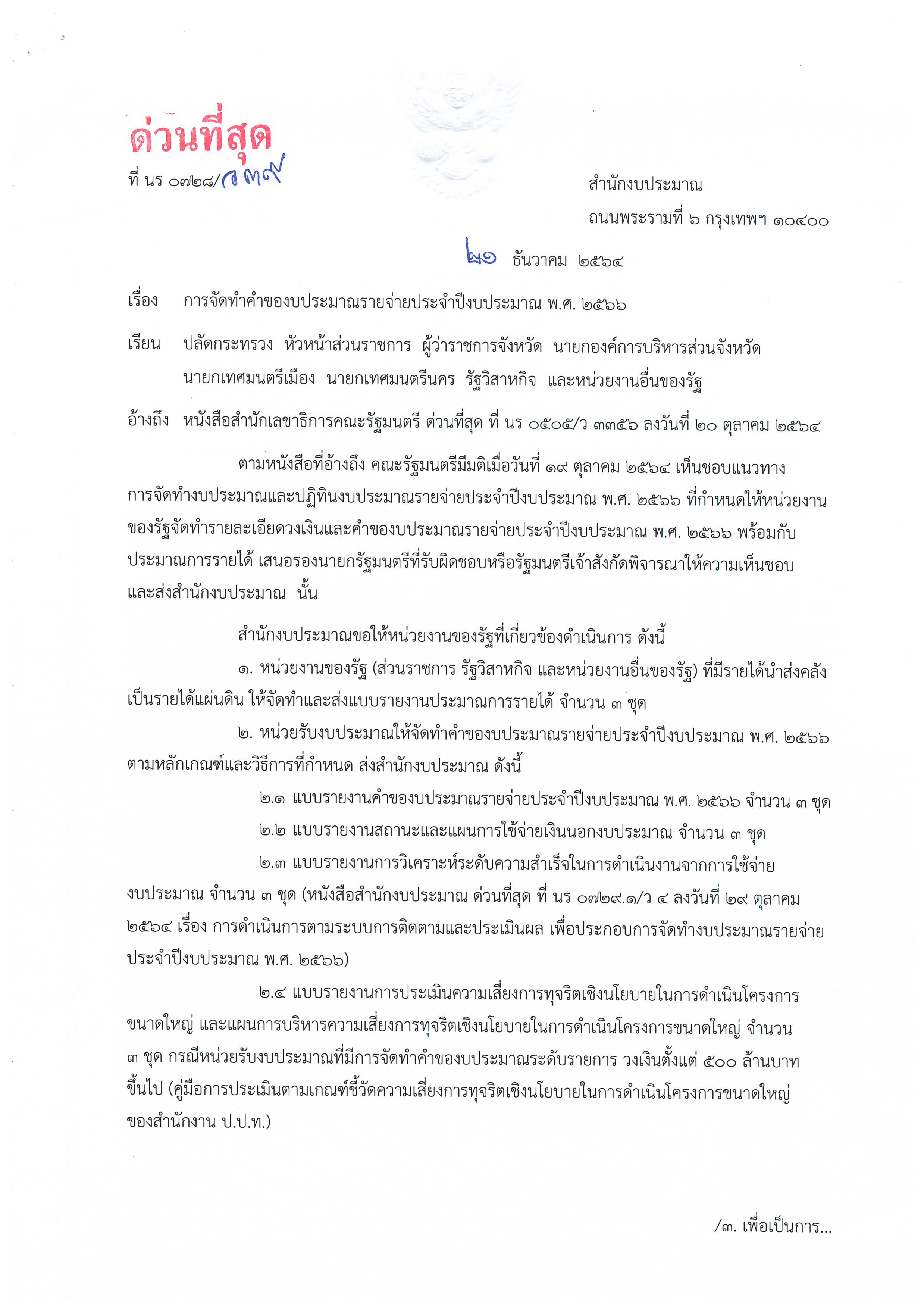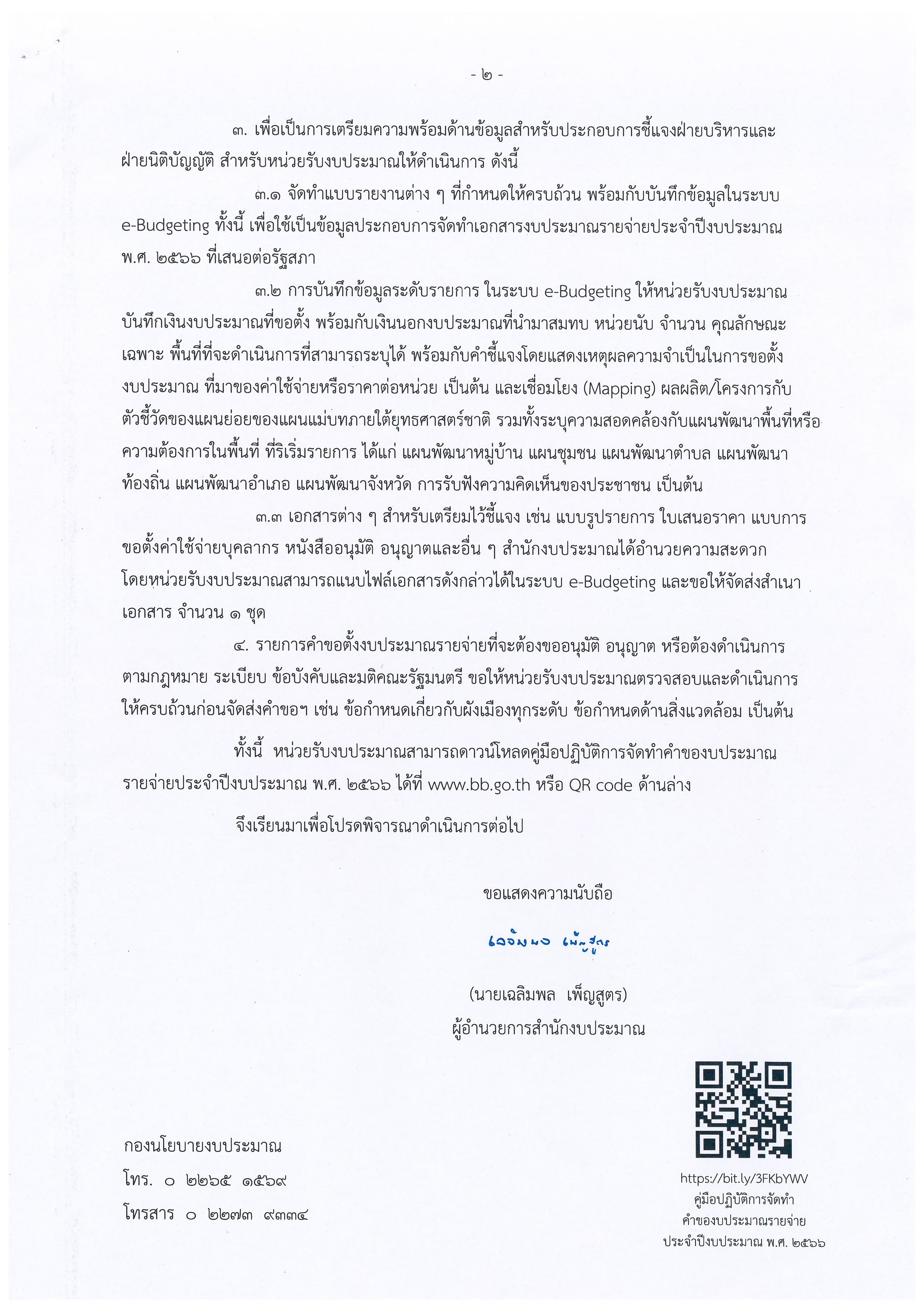 2.หน่วยรับงบประมาณ ให้จัดทำคำของบประมาณรายจ่ายประจำปีงบประมาณ พ.ศ.2566 ตามหลักเกณฑ์และวิธีการที่กำหนด ส่งสำนักงบประมาณ