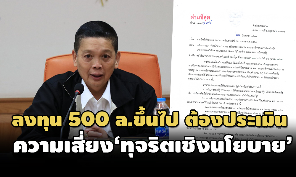 ‘สำนักงบประมาณ’ แจ้งแนวทางจัดทำคำของบปี 66 ให้ ‘ส่วนราชการ-ท้องถิ่น-รัฐวิสาหกิจ’ ใช้เป็นแนวทางในการจัดทำคำขอรับการจัดสรรงบ เผยโครงการที่มีวงเงินลงทุน 500 ล้านบาทขึ้นไป ต้องจัดทำแบบประเมินความเสี่ยงทุจริตเชิงนโยบาย