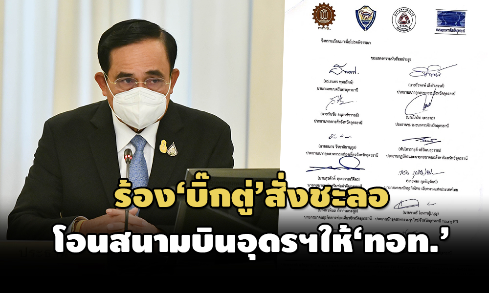 ‘ภาคเอกชน-องค์กรปกครองส่วนท้องถิ่น’ 12 องค์กร จ.อุดรฯ ยื่นหนังสือร้อง ‘พล.อ.ประยุทธ์’ ขอให้สั่งชะลอการโอน ‘สนามบินอุดรฯ’ ให้ ‘ทอท.’ เพื่อให้ ‘ม.ราชภัฎอุดรธานี’ เข้าไปศึกษาผลกระทบก่อน ระบุต้องให้ ‘เจ้าของพื้นที่’ ร่วมตัดสินใจด้วย