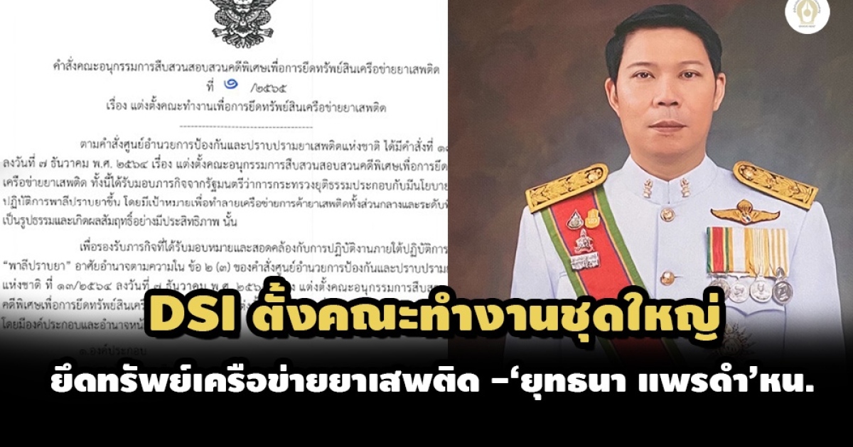ดีเอสไอตั้งคณะทำงานชุดใหญ่สืบสวนยึดทรัพย์เครือข่ายยาเสพติด พ.ต.ต.ยุทธนา แพรดำ รองอธิบดีฯหัวหน้าชุด รองผอ.กองคดีความผิดเกี่ยวกับการเสนอราคาต่อหน่วยงานของรัฐ เลขาฯ ไม่มีชื่ออดีต ผอ.กองปฎิบัติการคดีพิเศษภาคผู้สั่งถอนอายัดรถหรูร่วม