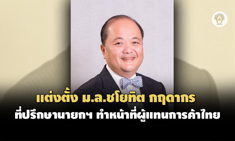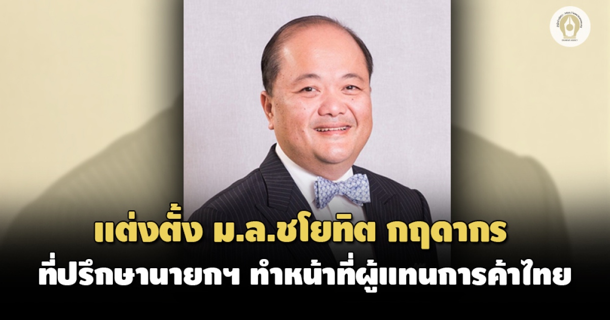 ครม.รับทราบคำสั่งสำนักนายกฯ แต่งตั้ง 'ม.ล.ชโยทิต กฤดากร' เป็นที่ปรึกษานายกรัฐมนตรี ทำหน้าที่ผู้แทนการค้าไทย มีผลตั้งแต่ 6 ม.ค.เป็นต้นไป