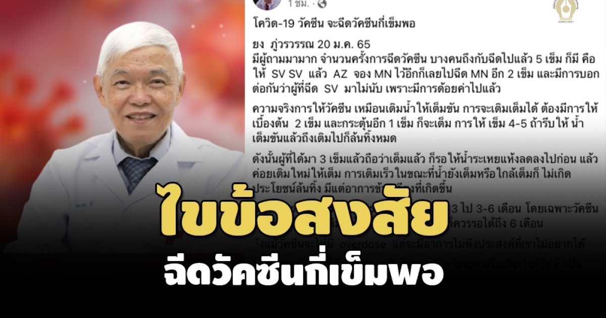 ผู้สื่อข่าวรายงานว่า เมื่อวันที่ 20 ม.ค. 2565 ศ.นพ.ยง ภู่วรวรรณ หัวหน้าศูนย์เชี่ยวชาญเฉพาะทางด้านไวรัสวิทยาคลินิก ภาควิชากุมารเวชศาสตร์ คณะแพทยศาสตร์ จุฬาลงกรณ์มหาวิทยาลัย โพสต์ข้อความผ่านเฟซบุ๊กส่วนตัว Yong Poovorawan ว่า มีผู้ถามมามาก จำนวนครั้งการฉีดวัคซีน บางคนถึงกับฉีดไปแล้ว 5 เข็ม ก็มี คือ ให้ SV SV แล้ว AZ จอง MN ไว้อีกก็เลยไปฉีด MN อีก 2 เข็ม และมีการบอกต่อกันว่าผู้ที่ฉีด SV มาไม่นับ เพราะมีการด้อยค่าไปแล้ว