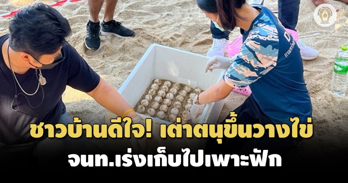 จ.ภูเก็ต เจ้าหน้าที่เก็บไข่เต่าตนุขึ้นวางไข่กลางดึกบนชายหาดอ่าวเสนรังแรกปีนี้ไปเพาะฟักแล้วเนื่องจากมีน้ำทะเลท่วมถึง ชาวบ้านตื่นเต้น