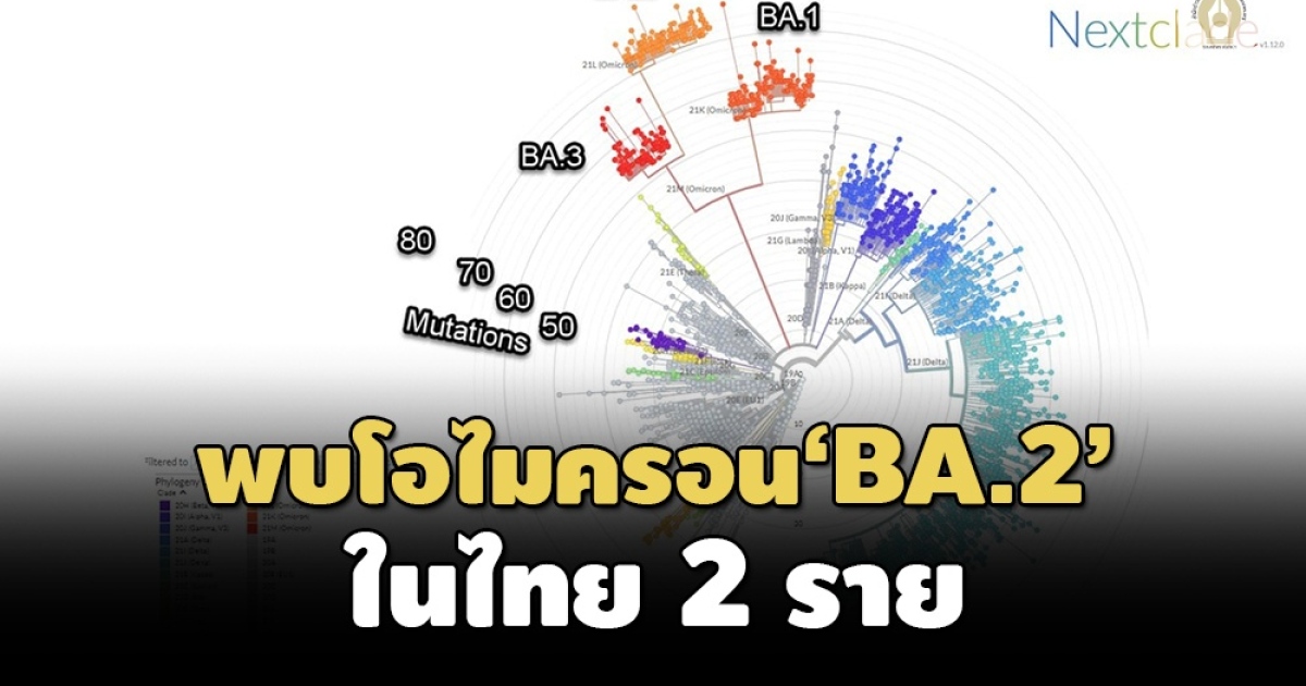 ศูนย์จีโนมทางการแพทย์ โรงพยารามาธิบดี เผยพบโอไมครอนสายพันธุ์ย่อย BA.2 สายพันธุ์ล่องหนในไทย 2 ราย กลายพันธุ์กว่า 70-80 ตำแหน่ง ชี้อาจแพร่กระจายได้เร็วกว่าสายพันธุ์หลัก