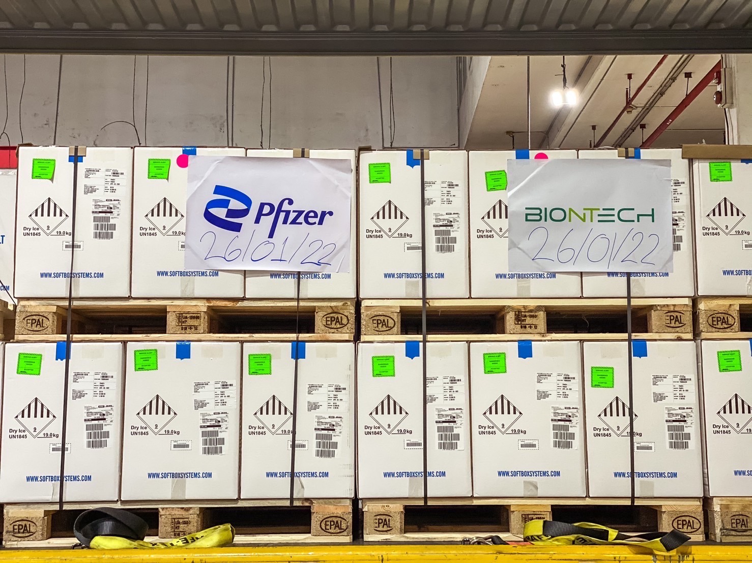 นพ.โอภาส กล่าวว่า วัคซีนไฟเซอร์สำหรับเด็กอายุ 5-11 ปี ล็อตแรก 300,000 โดส มาถึงไทยเมื่อเช้าวันนี้ (26 ม.ค.) ได้ส่งวัคซีนและเอกสารให้กรมวิทยาศาสตร์การแพทย์ตรวจสอบคุณภาพ จากนั้นจะส่งไปยังจุดฉีดทั่วประเทศต่อไป สำหรับวัคซีนที่เหลือจะทยอยส่งทุกสัปดาห์จนครบ 3,500,000 โดส ภายในไตรมาสแรก