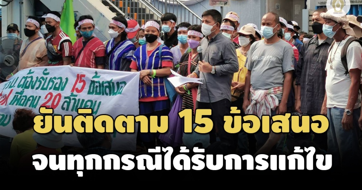 การประชุมคณะกรรมการแก้ไขปัญหาของขบวนการประชาชนเพื่อสังคมที่เป็นธรรม ครั้งที่ 1/2565 เมื่อวันที่ 31 ม.ค. 2565 ณ มูลนิธิอนุรักษ์ป่ารอยต่อ 5 จังหวัด ผ่านระบบวีดีทัศน์ทางไกล, ในห้องประชุม 301 ตึกบัญชาการ ทำเนียบรัฐบาล และห้องประชุม 1 ชั้น 2 อาคารสำนักงาน ก.พ.(เดิม) ซึ่งมีพลเอกประวิตร วงษ์สุวรรณ รองนายกรัฐมนตรี เป็นประธานได้พิจารณาข้อเรียกร้อง 15 ข้อ เราขอแถลงท่าทีและจุดยืนดังนี้