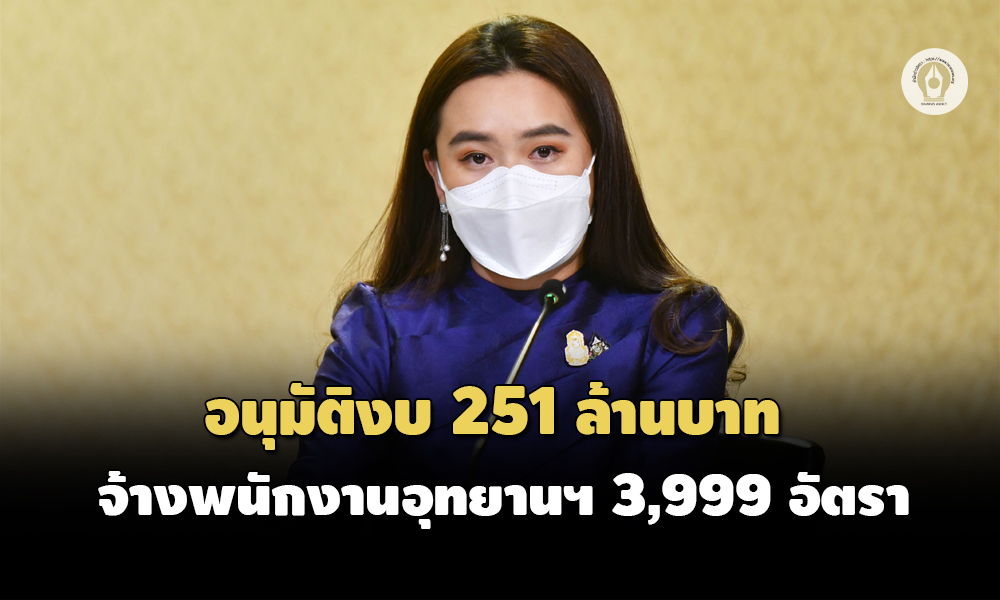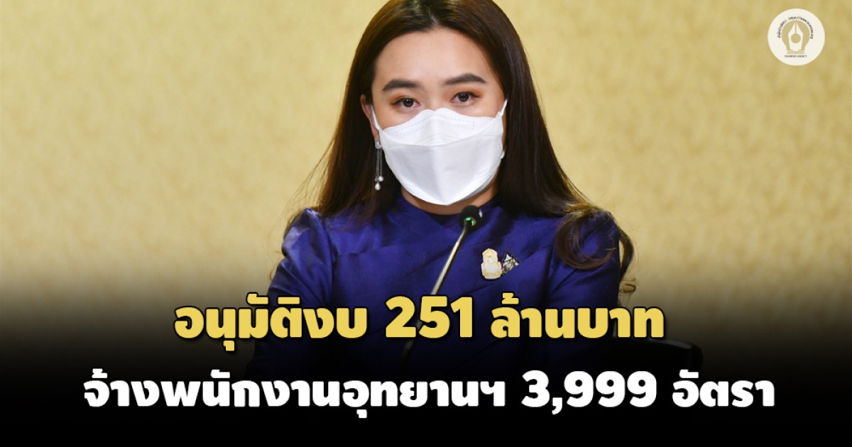 ครม.อนุมัติงบกลาง 251 ล้านบาท จ้างเหมาพนักงานปฏิบัติงานกรมอุทยานฯ 3,999 อัตรา รวมระยะเวลาการจ้าง 7 เดือน มี.ค.-ก.ย.65