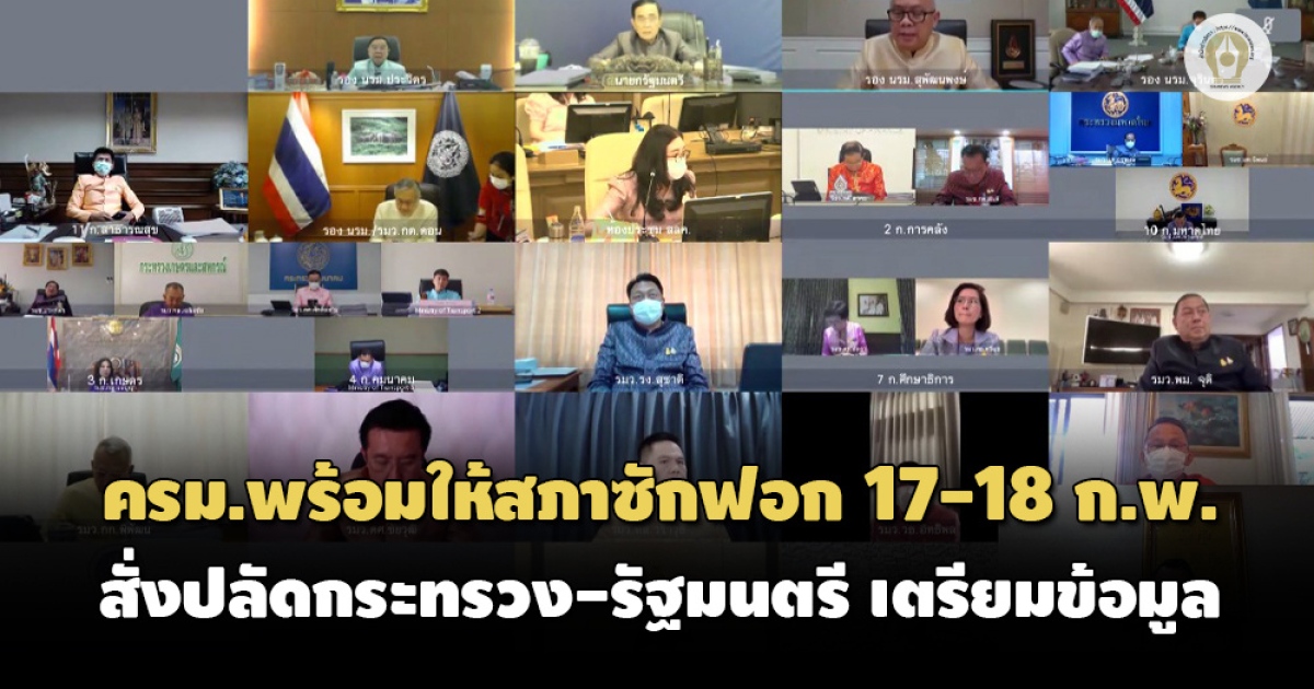 ครม.พร้อมชี้แจงสภา 17-18 ก.พ. พร้อมสั่งปลัดกระทรวง-รัฐมนตรี เตรียมข้อมูลพร้อมรับศึกอภิปรายทั่วไปที่กำลังจะเกิดขึ้น