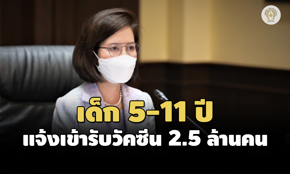 กระทรวงศึกษาธิการเผยเด็ก 5-11 ปี แจ้งความประสงค์ฉีดวัคซีนแล้ว 2.5 ล้านคน เร่งรณรงค์นักเรียนเข้ารับวัคซีนโควิดเพิ่มอีก สร้างความมั่นใจให้โรงเรียนเปิดเรียน Onsite ได้ทั่วไทย