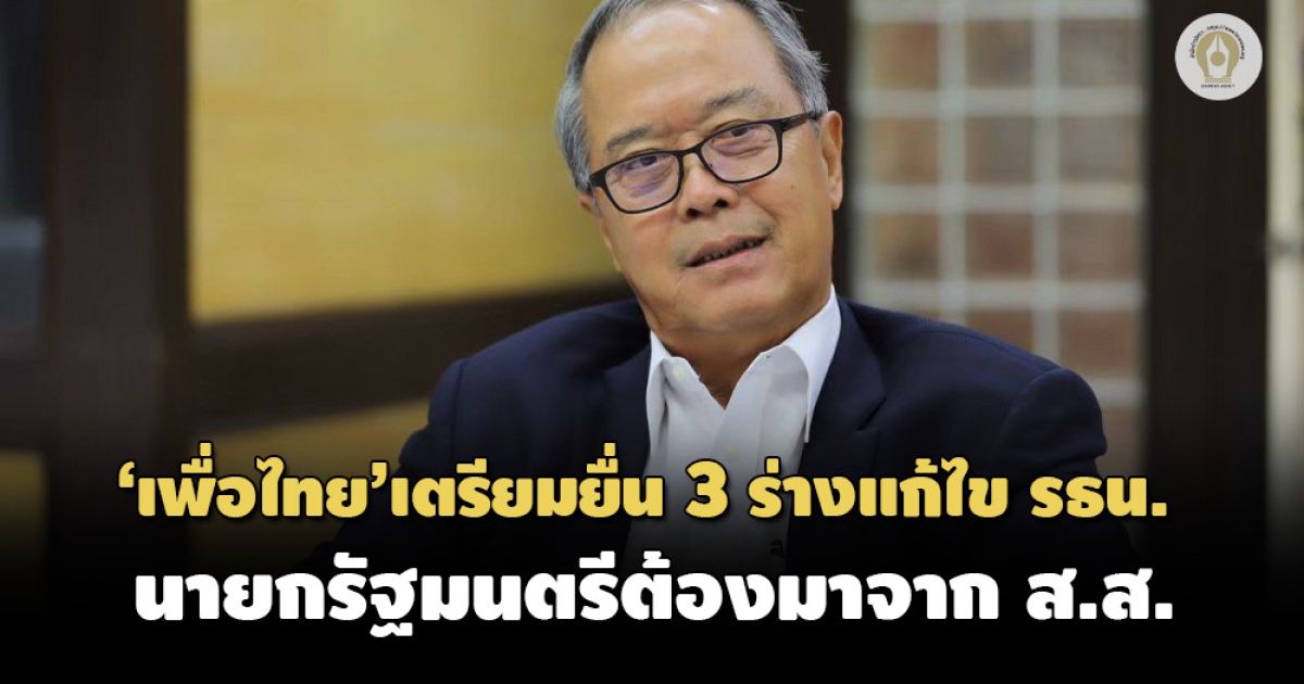 ‘เพื่อไทย’ เตรียมยื่นร่างแก้ไข รธน. 3 ฉบับ กำหนดที่มานายกรัฐมนตรี ต้องเป็น ส.ส. เพิ่มสิทธิเสรีภาพการชุมนุม - ต้องรับฟังความเห็นประชาชนก่อนทำโครงการกระทบชุมชน